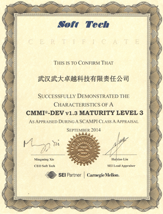 卓越科技自2011年首次獲得CMMI3認證證書之后,一直堅持生產(chǎn)標(biāo)準化、流程過程化、管理科學(xué)化,堅定不移地貫徹CMMI3的過程能力的要求,進一步全方位提升企業(yè)的開發(fā)能力和水平。卓越科技再次通過CMMI3認證證明公司的開發(fā)能力、管理能力和市場競爭能力依然保持國際競爭水平。