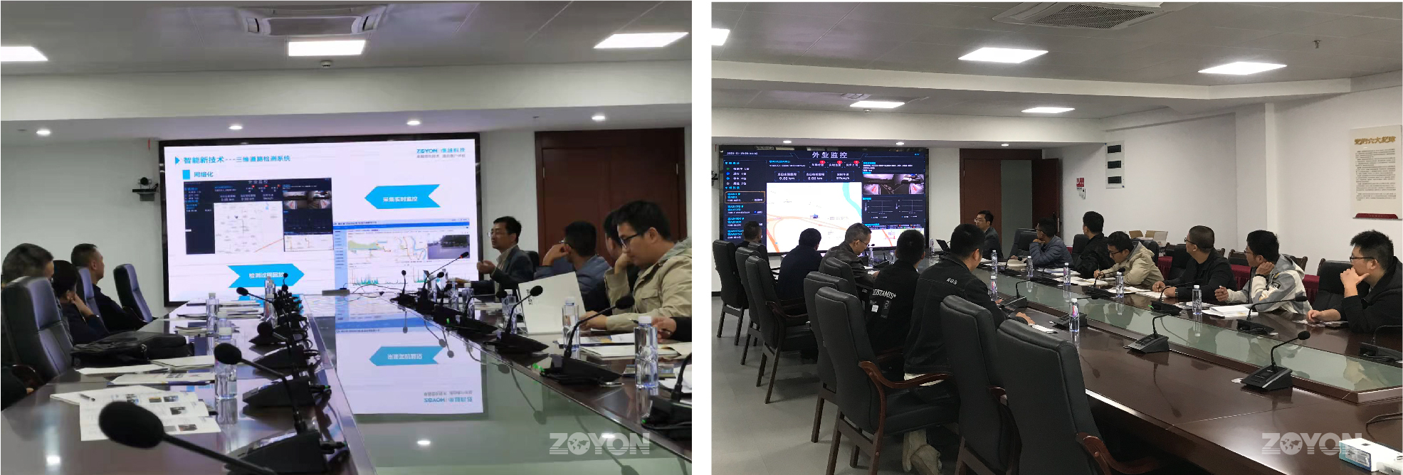 卓越科技盧總在現(xiàn)場對ZOYON-RTM-3D多功能路況快速檢測系統(tǒng)進(jìn)行了詳細(xì)介紹。參會領(lǐng)導(dǎo)全程在線觀看了ZOYON-RTM-3D檢測系統(tǒng)的外業(yè)檢測演示,充分展示了三維多功能路況快速檢測系統(tǒng)的功能和應(yīng)用。此次報(bào)告會及演示產(chǎn)品得到了現(xiàn)場領(lǐng)導(dǎo)的高度認(rèn)可。