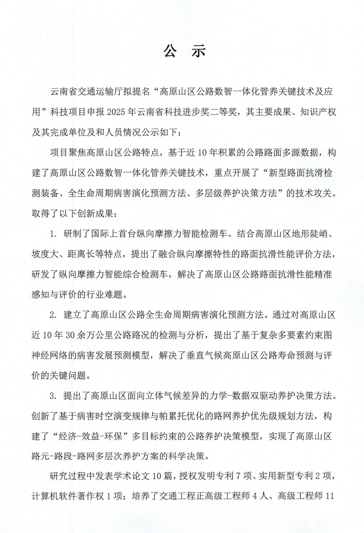 “高原山區(qū)公路數(shù)智一體化管養(yǎng)關(guān)鍵技術(shù)及應(yīng)用”科技項目公示