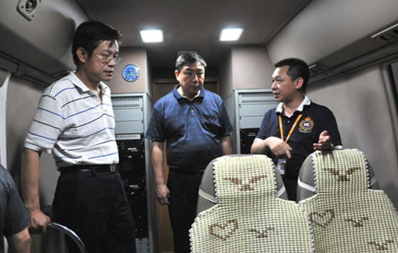 圖2:楊躍承副主任(中)檢測(cè)車(chē)內(nèi)參觀
