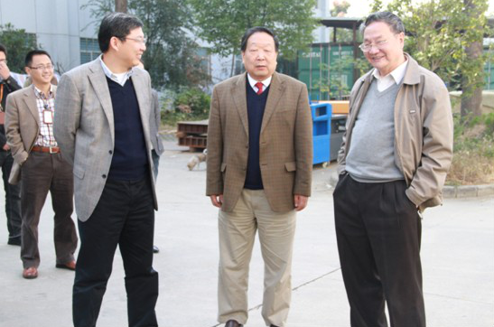 ?????院士參觀激光動(dòng)態(tài)彎沉測(cè)量系統(tǒng)(從左至右公司首席科學(xué)家、武漢大學(xué)常務(wù)副校長(zhǎng)李清泉先生陪同中國(guó)工程院和中國(guó)科學(xué)院雙院士李德仁先生、中國(guó)科學(xué)院院士許厚澤先生)