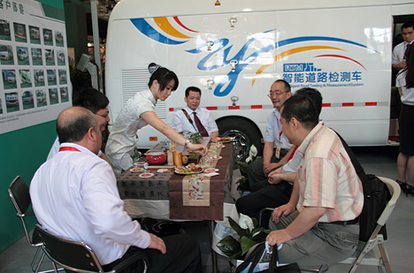 武漢武大卓越科技有限責(zé)任公司以自主研發(fā)的智能道路檢測系統(tǒng)亮相展會(huì),配以頗具中國韻味的茶藝表演,吸引了眾多參觀者。