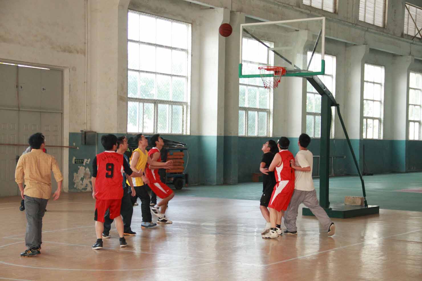 圖為籃球聯(lián)誼賽正在激烈地進(jìn)行中