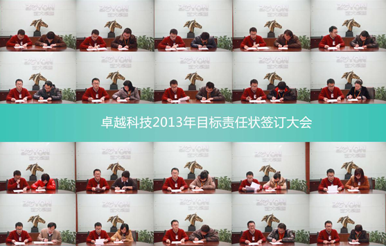 會上,董事長兼執(zhí)行總裁曹民先生首先與各部門負責人分別簽訂了2013年各自部門經(jīng)營目標責任狀。隨后,董事長兼執(zhí)行總裁曹民先生對2013年的工作計劃提出要求:清楚自己的工作目標,加快工作部署,對目標進行分解,責任到人。