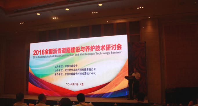 8月25日,2016全國瀝青道路建設(shè)與養(yǎng)護技術(shù)研討會在遼寧省大連市舉行。此次會議由中國公路學會主辦,武漢武大卓越科技有限責任公司協(xié)辦,中國公路學會科技成果推廣中心承辦。交通運輸部公路局養(yǎng)護保通處處長王松波、交通運輸部路網(wǎng)中心副處長虞麗云、交通運輸部公路科學研究院交通公路工程研究中心主任徐劍、中國公路學會副秘書長巨榮云、武漢武大卓越科技有限責任公司總工程師林紅等多位行業(yè)專家以及300余名業(yè)內(nèi)人士參加了此次研討會。會議由中國公路學會副秘書長巨榮云主持,其中,武大卓越董事長兼總裁曹民先生發(fā)表致辭。